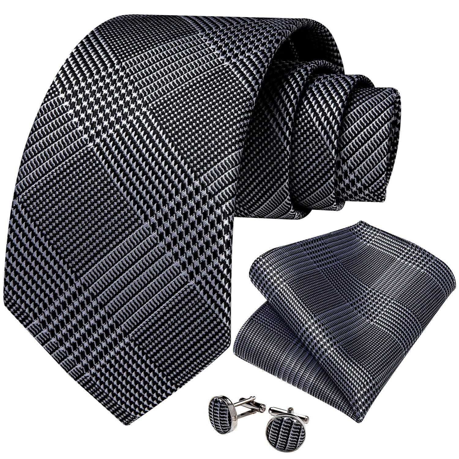 Houndstooth Black Silver Gold Blue Pink Luxury Silk Ties For Men 8cm Business Wedding Neck Tie Set Handkerchief Men's Gift