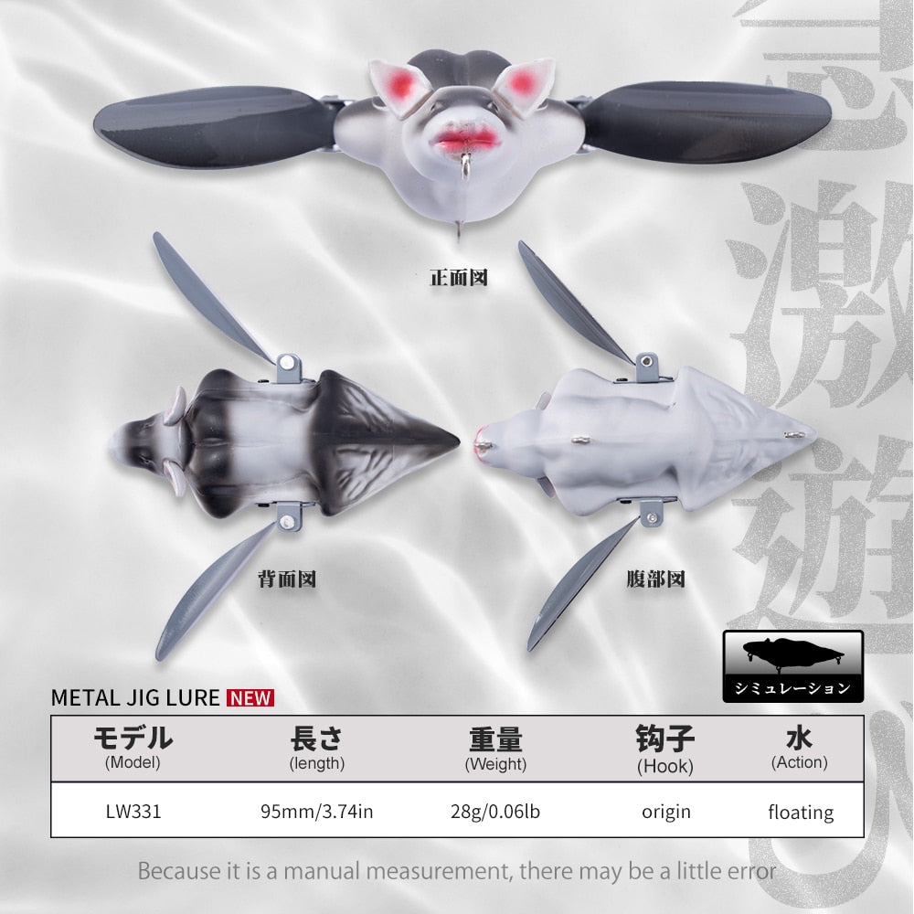 Hunthouse Bionic 3D Bat Artificial Pencil Bait Floating Topwater Surface Fishing Lure Wobbler 95mm 28g Crankbait For Bass Tackle
