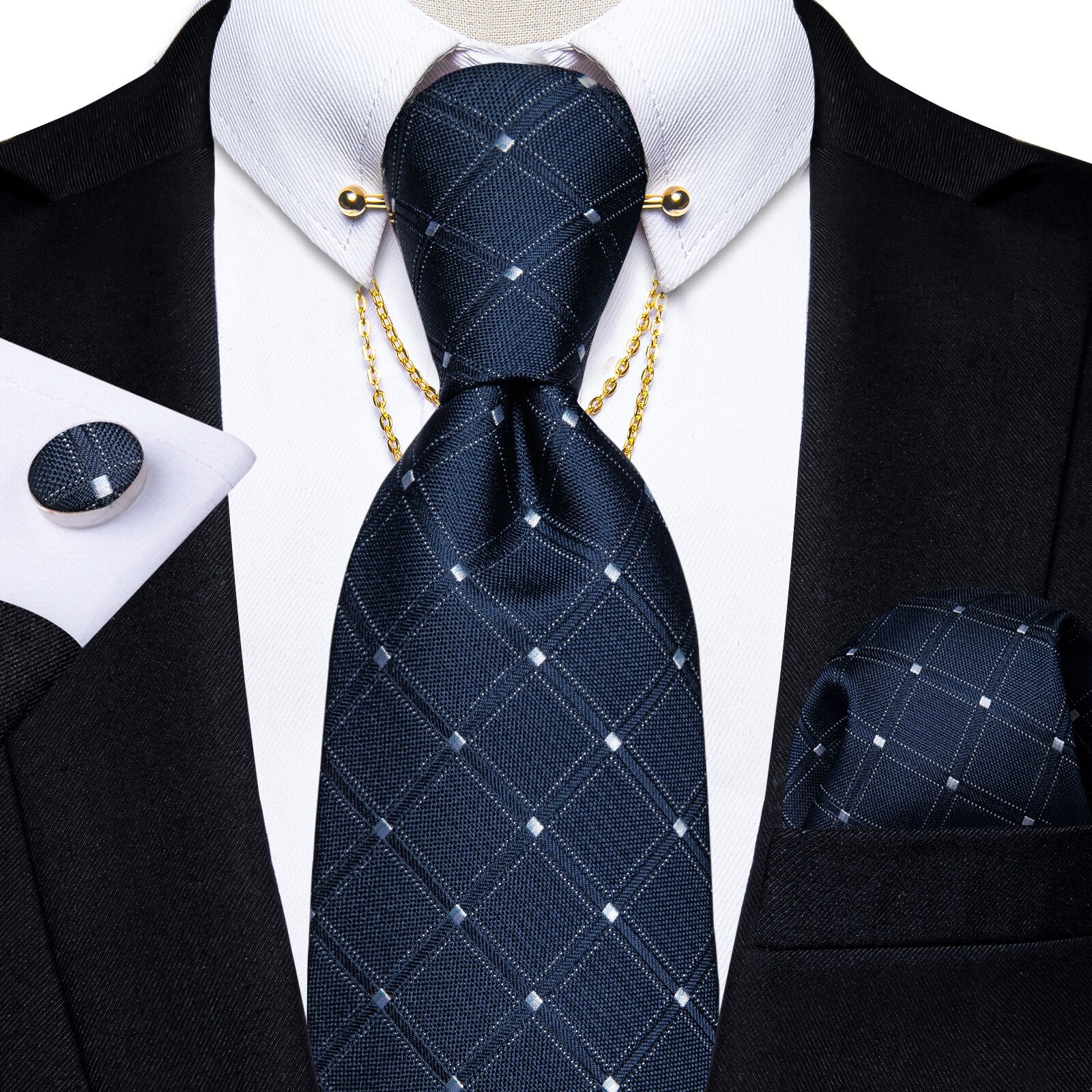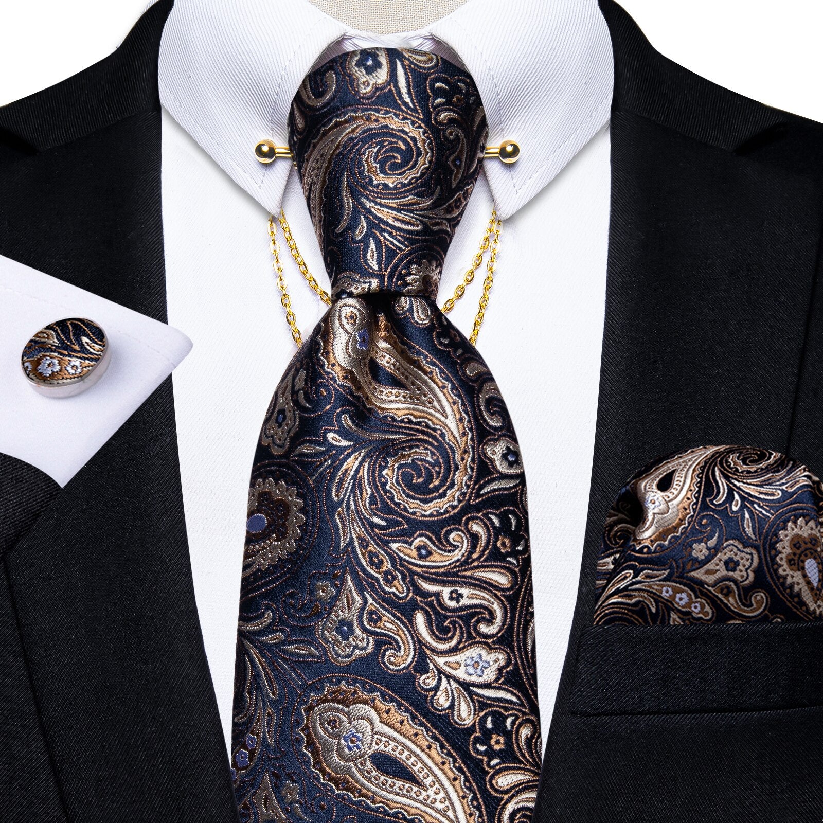 Luxury Black Gold Paisley Silk Ties For Men 8cm Men's Wedding Neck Tie Pocket Square Cufflinks Set Collar Pin Men's Gift